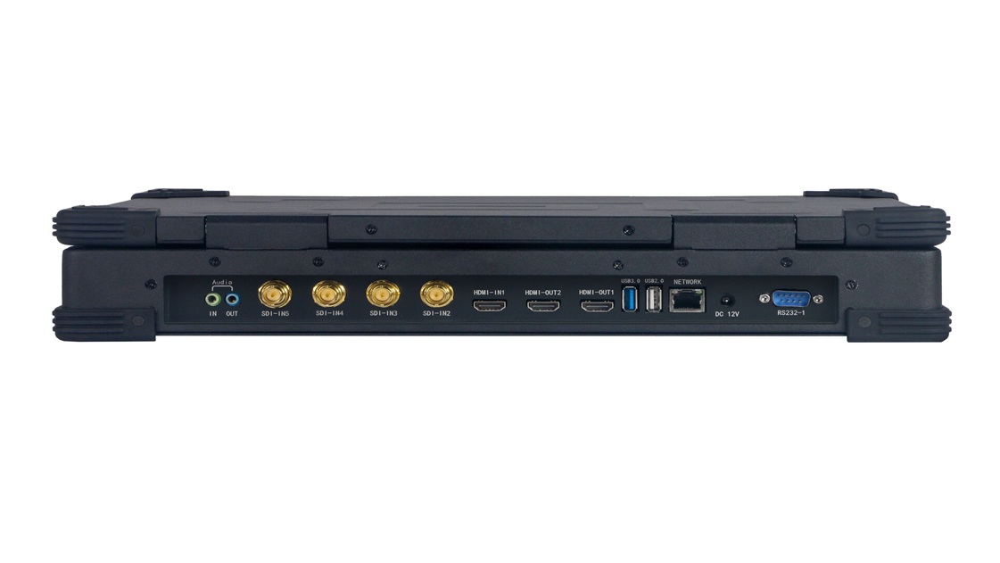 Industrial all-in-one embedded encoder with built-in 15.6″ LCD, 1* HDMI inputs,4* 3G-SDI input & 1*IP, 4K H.265/H.264 hardware encoding & decoding, multi-mode live production — designed for education, healthcare, enterprise and professional broadcast.