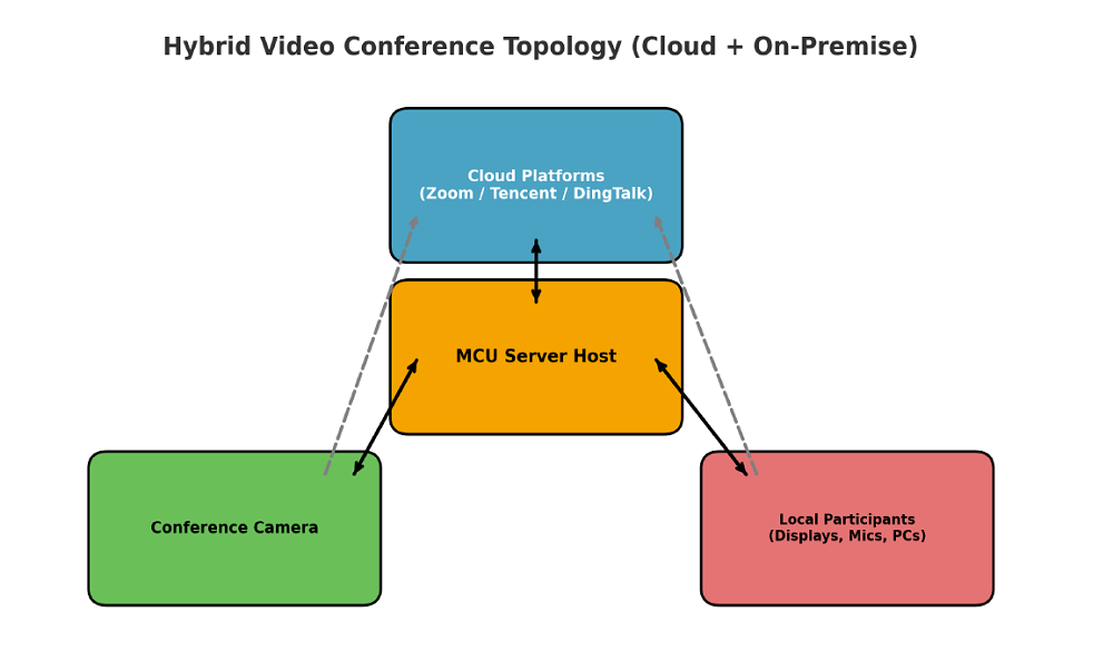 Professional hybrid video conference solution combining cloud platforms and on-premise MCU, delivering secure 4K video, flexible BYOM integration, and enterprise-grade collaboration.